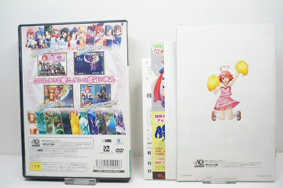◎商品概要『アルカナハート』は2006年末からアーケードゲームとして稼動を開始した大人気の2D格闘アクションです。本作が初の家庭用移植であり、2007年4月中旬から稼動を開始したバージョンUp版『FULL!』にも対応しています。◎大人気の理由1:守護聖「アルカナ」の選択肢によって、同じキャラクターでも幅広い戦闘スタイルが楽しめる!2:1ラウンドに1度だけ使える「アルカナフォース」を発動し、一気に形勢を逆転する事も可能。目まぐるしく変化する激しい攻防が楽しい!3:縦方向に3画面分ある広大な戦闘フィールド。自動追尾システム「ホーミングアクション」を駆使した派手な連続攻撃は爽快感が満載!◎PlayStation2版のオリジナル要素1:ストーリーモードが全キャラフルボイス仕様!「愛乃はあと」役の高橋美佳子、「廿楽冴姫」役の志村由美等、人気声優陣がしゃべりまくります。2:雑誌やメディアで紹介された貴重なイラストをはじめ、豪華なゲストイラストレーターを起用した描き下ろしイラストも収録したギャラリーモード搭載!3:バージョンUp版『FULL!』に対応した事で