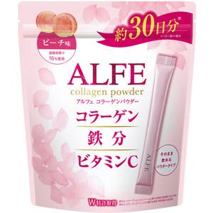●アルフェ コラーゲンパウダーはコラーゲン1、000mgに、毎日のキレイに役立つ鉄分、ビタミンCを配合した栄養機能食品です。