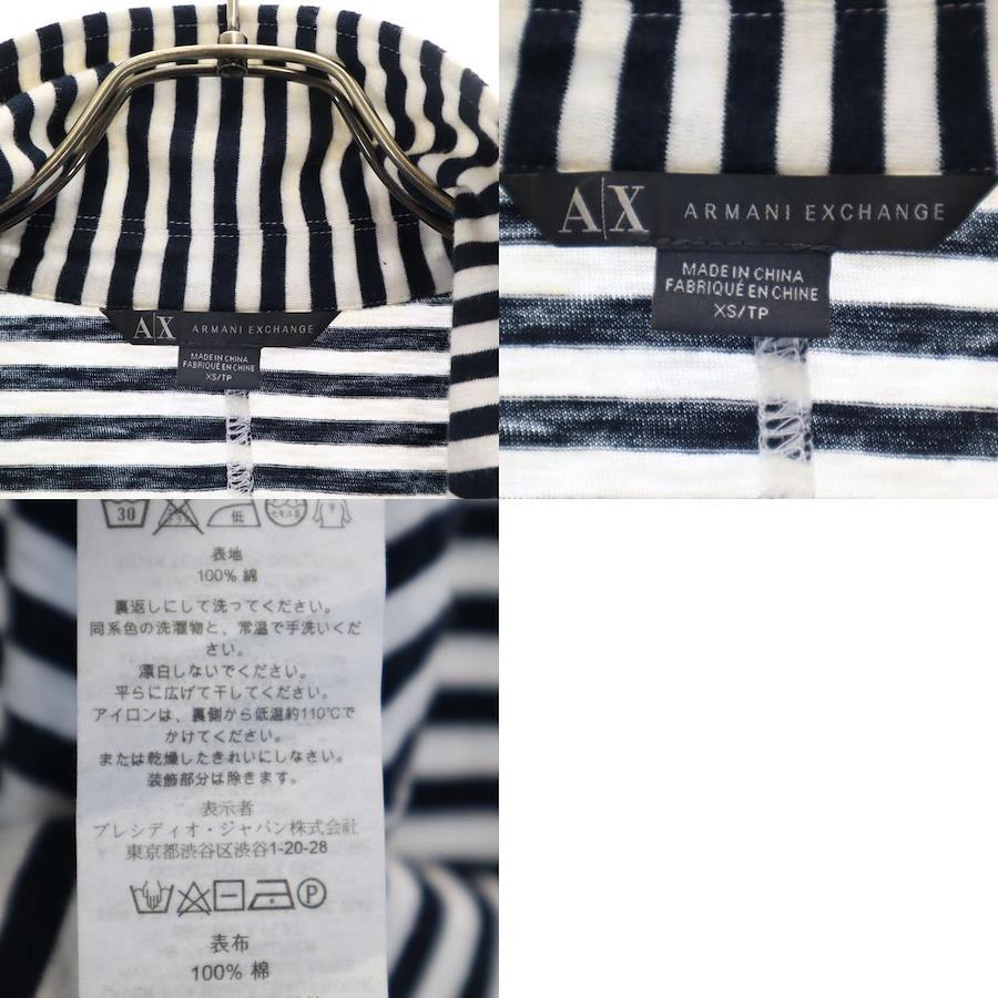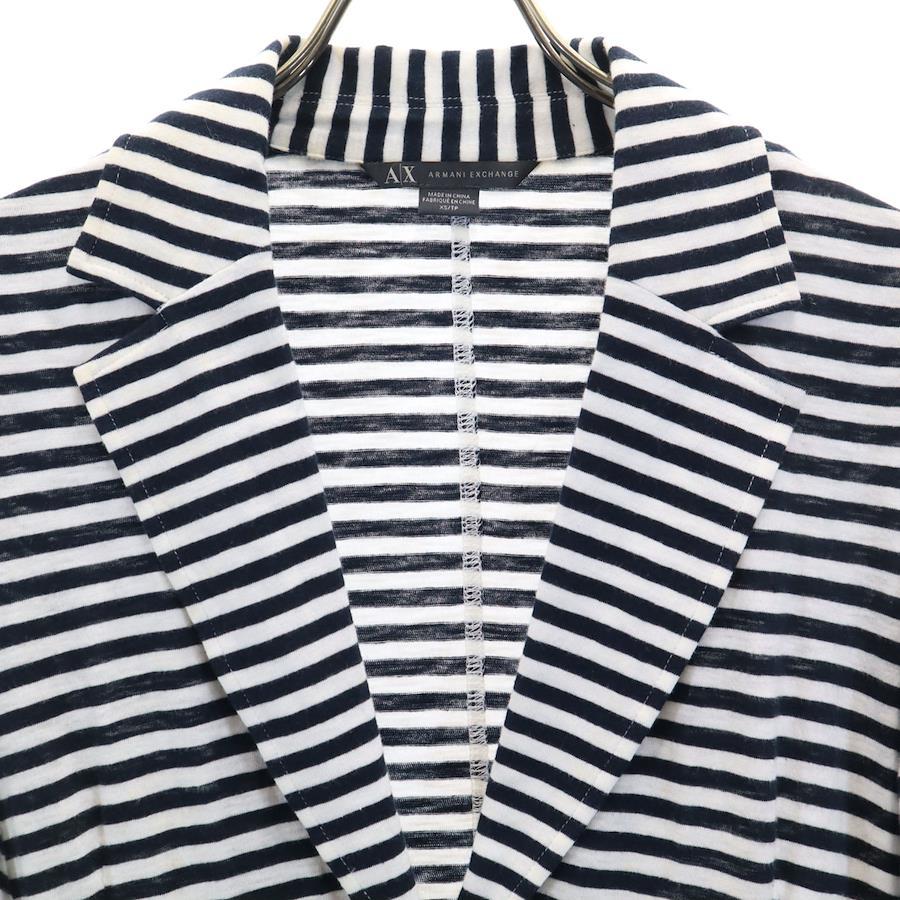 アルマーニエクスチェンジ ボーダー 長袖 ラペル カーディガン XS ホワイト レディース