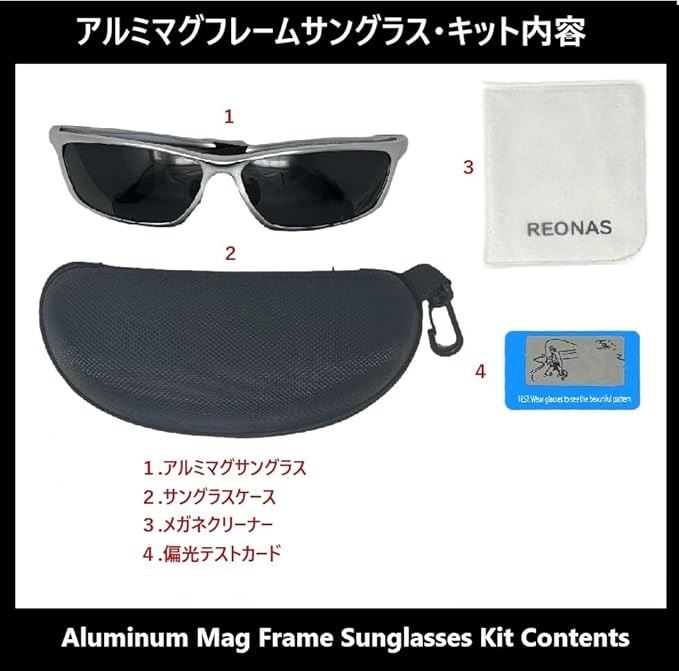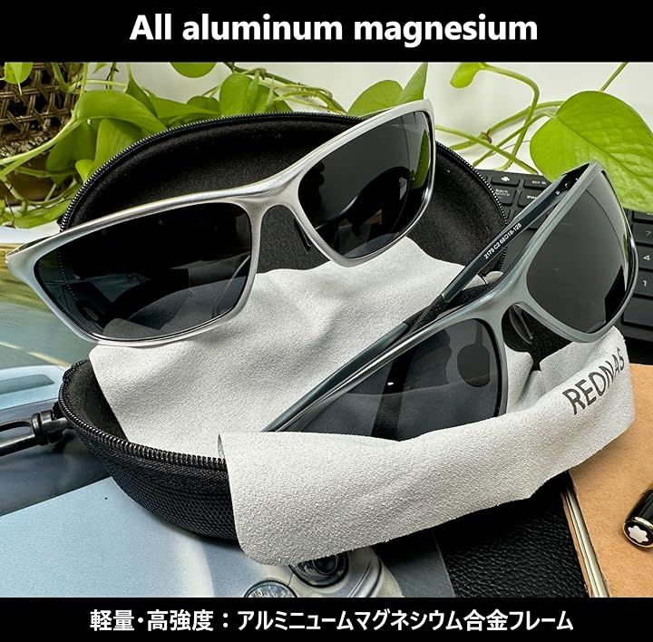 「素材構成」アルミニウムマグネシウム 偏光レンズ UV400「サイズ」ヨコ幅 153mm タテ幅 41mm アーム幅 128mm ノーズ 18mm 重量:28g
