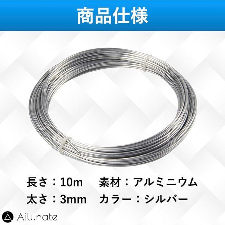 「商品仕様」長さ:10m、太さ:3mm、素材:アルミニウム、カラー:シルバー
