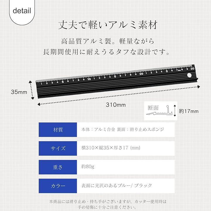 「ズレを防ぐ滑り止め付き」裏面にゴム製の滑り止めを搭載し、作業中のズレを防いで、正確な直線作業をサポートします。