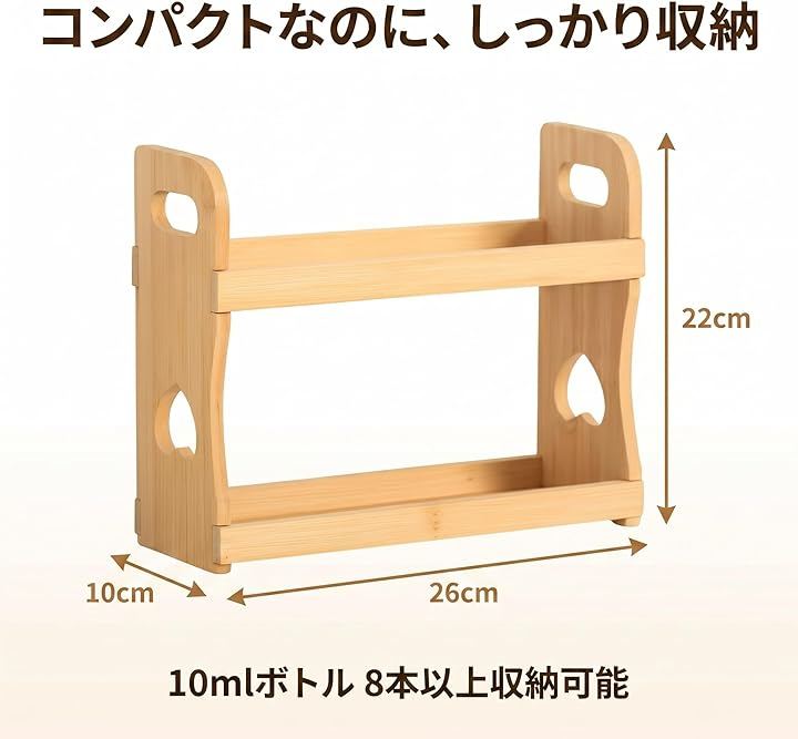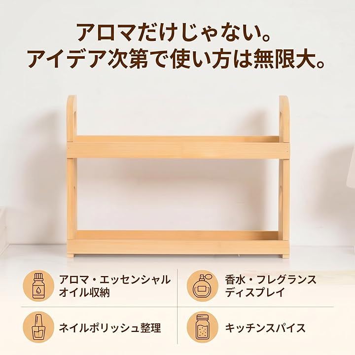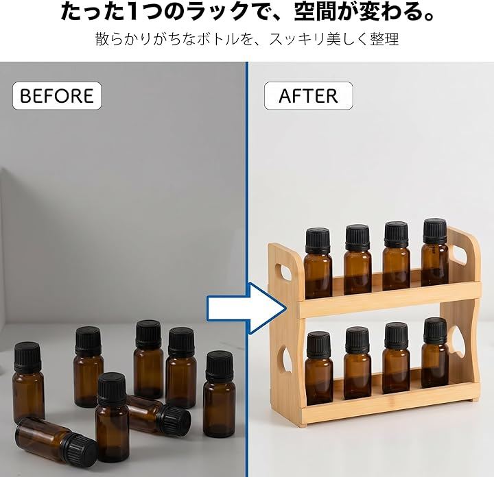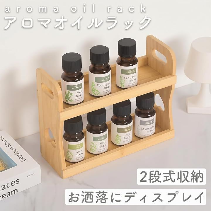 「2段で8本すっきり収納」 アロマオイル・エッセンシャルオイルを2段構造で省スペース整理。