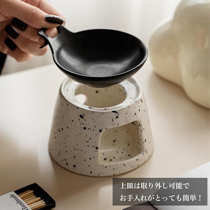 陶器製の土台と取り外し可能な上皿の組み合わせで、手軽にアロマを楽しめます。