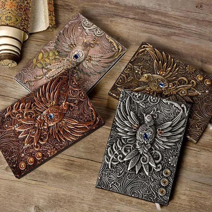 3Dアンティークノート不死鳥柄A5サイズ(100ページ)。