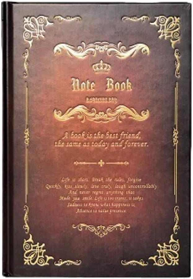 カバーの色は豪華でビンテージの味わいがあり、まるで魔法書のようなノート。