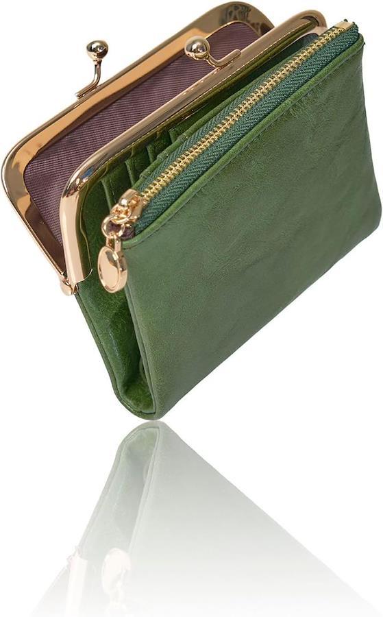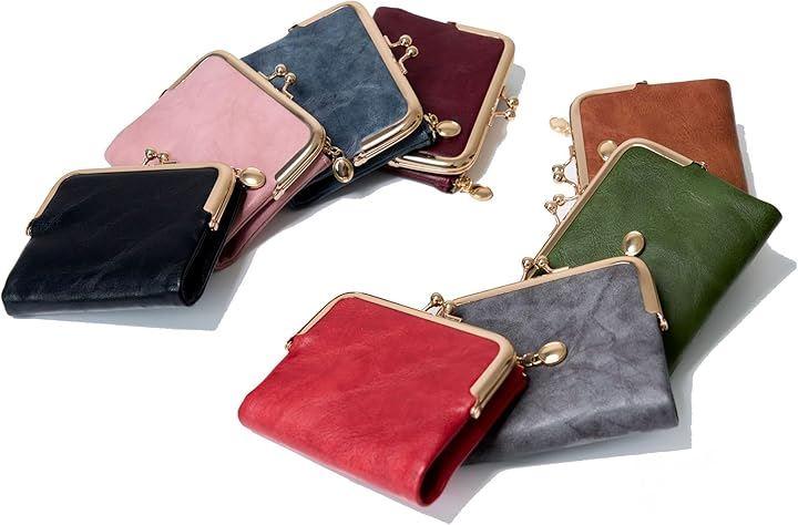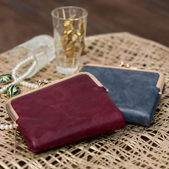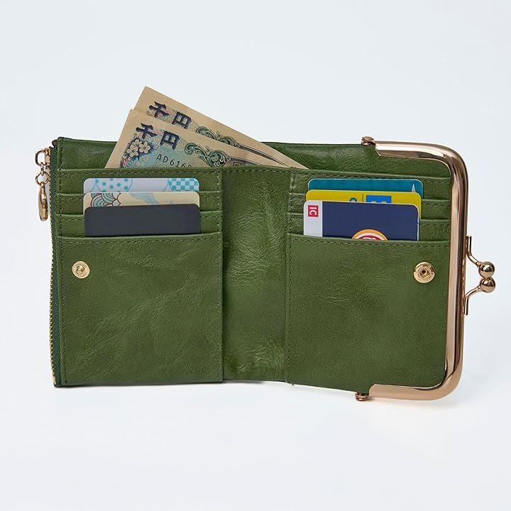 「飽きのこないデザイン」上品なくすみ系の大人カラーが魅力のコンパクトな二つ折り本革がま口財布。