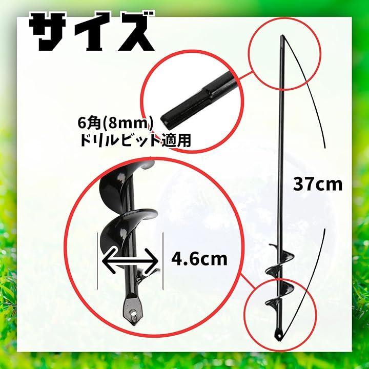 ・適さない地質:耕す前の固い土・鉄筋・金属・硬すぎる岩・木の根が多い場所 ・螺旋の長さ以上の深掘りはお控えください 簡単装着&互換性 – 六角軸(約7.5mm)でインパクトドライバーや電動ドリルに対応。