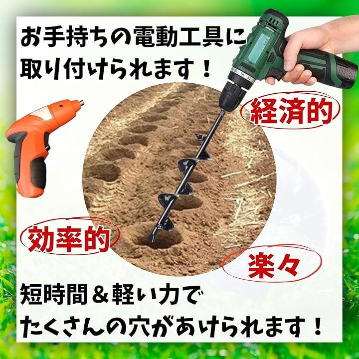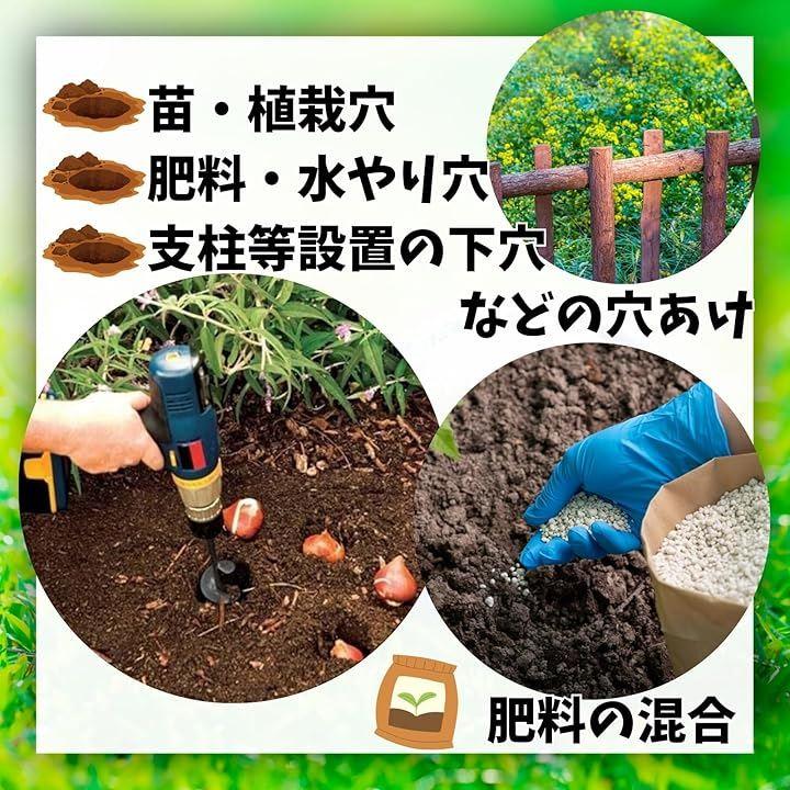 ラクラク穴掘り – 電動ドリルに取り付けるだけで、手作業に比べ速く土を掘削。