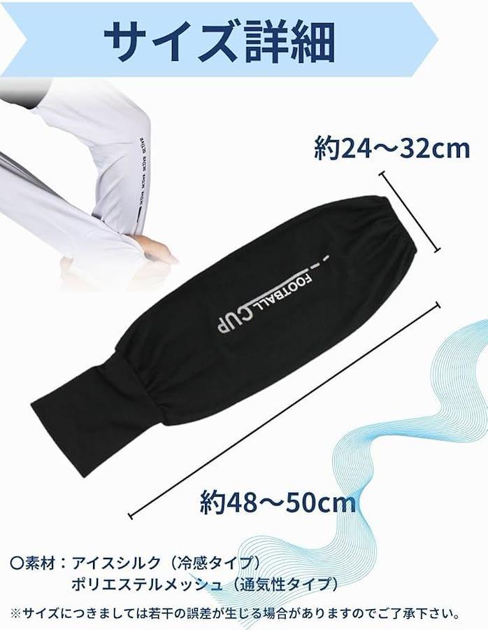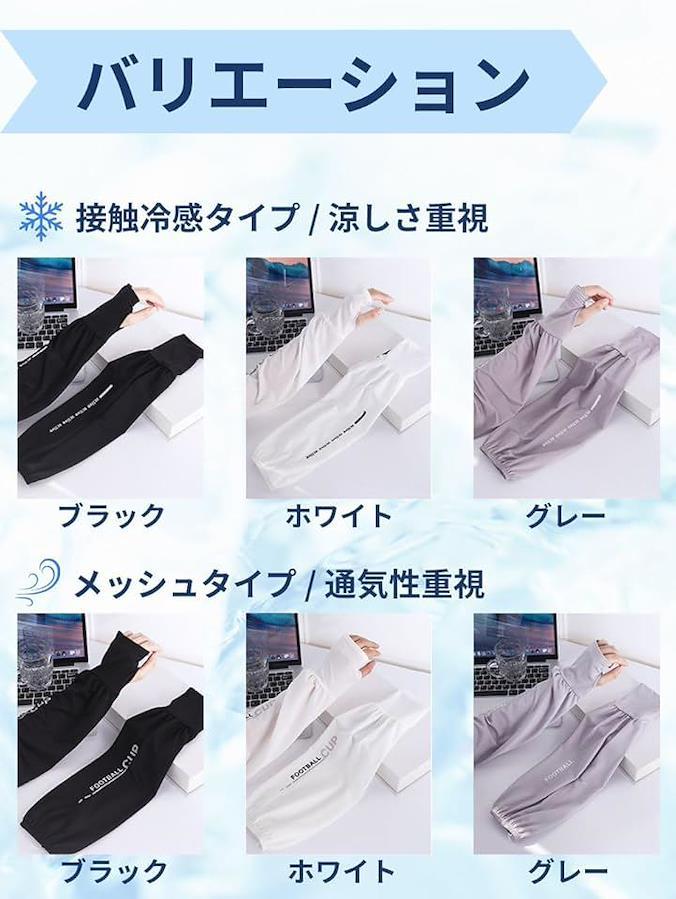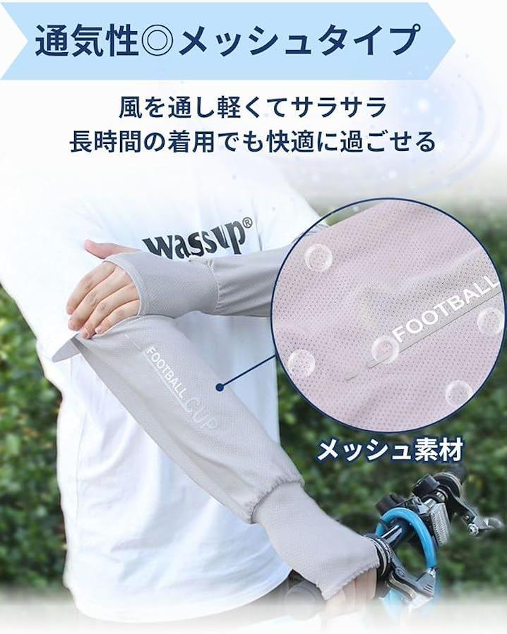冷感素材ほどのひんやり感はありませんが、汗をかいても乾きやすく快適な状態を維持しやすいアームカバーです。