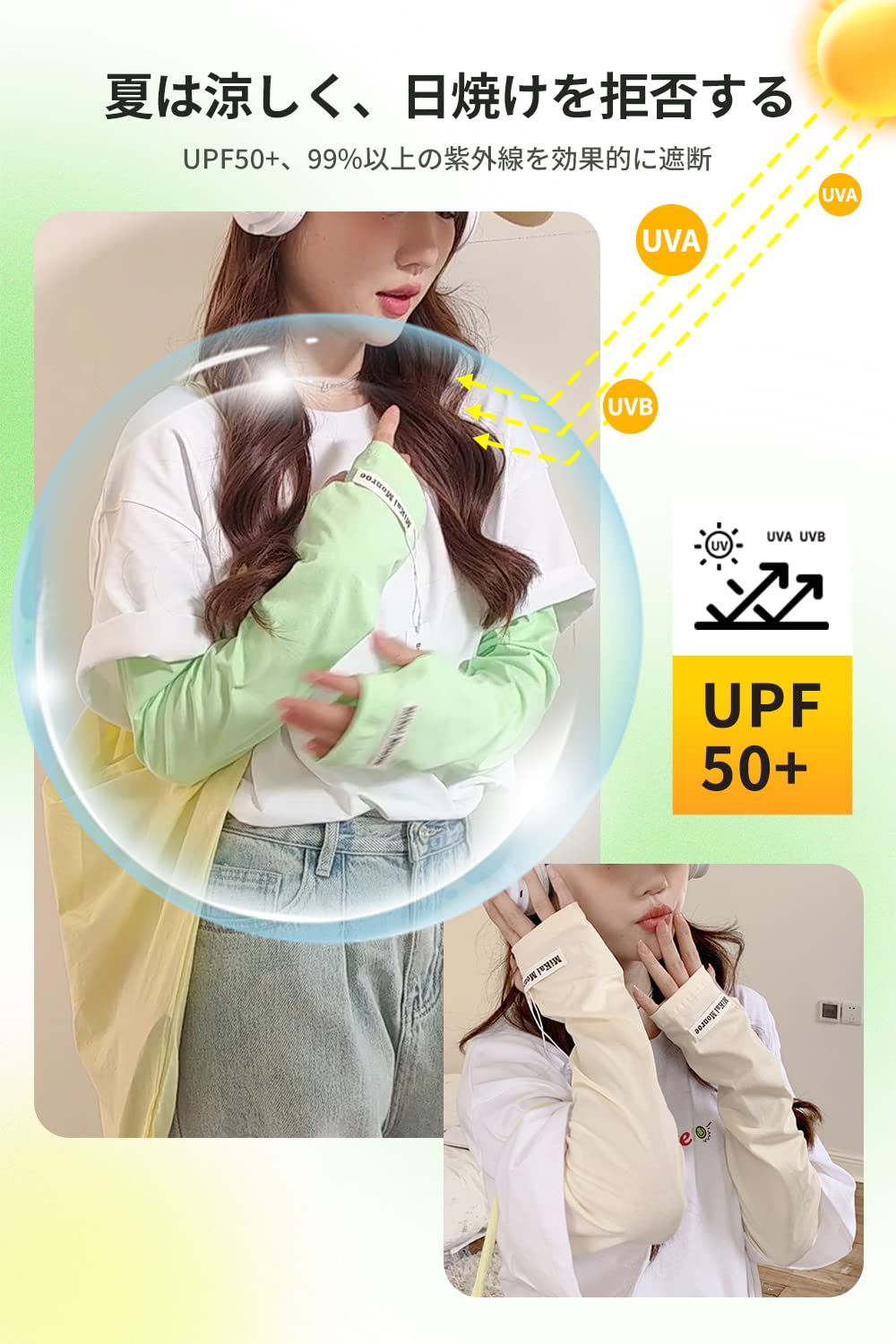 ◆【ゆったり設計 極上のつけ心地】いつものアームカバーと違って、ゆったりにデザインして、余裕あるので着脱しやすい動きやすいです。締め付けないので長時間の着用でも疲れがなくストレスないです。きつめ嫌のお方には絶対お楽しみに利用できるアームカバーです。 皮膚に密着しなく、べたつかず蒸れなくドライが続き、極上のつけ心地を実現します。 ◆【UPF50+・UVカット率99.9% 日焼け対策】UPF50+の紫外線を強力にカットできる繊維を採用、UVカット率99.9%に達します。長期日焼けすると、皮膚にダメージを与えるため肌が乾燥、老化しやすくなるので、出かける時は紫外線対策から肌を守ることがとても重要になります。本商品は日焼け防止や熱中症対策をサポートし、これからの季節に欠かせないアイテムに間違いありません。 ◆【親指穴デザイン 2WAY】親指通しの穴を開けてますので、2WAYお使いいただけます。親指が穴を通すと、手の甲までカバーできます。親指だけ分けてますので、つけたまま普通の作業やスマホ操作に影響なし、とても便利です。通さないと手の首までカバーし、洗練ですっきりしました。抗菌消臭加工で、激しく運動した後もニオイが気になりません。 ◆【どんなコーディネートにも合う 実用性】シンプルなデザイン,豊富なカラーバリエーション、カジュアルからスポーティーまでどんな服装にもコーディネートしやすい腕カバーです。ルーズ仕様で、腕のラインが明らかに見えなく、むしろ?せる視覚効果を与え、美しいシェルエットを実現。日除け対策用品としてもファッション用品としてもいいです。 ◆【吸湿吸汗 各シーン大活躍】吸湿速乾生地を採用、汗かいてもが素早く吸収し発散でき、蒸れにくい、いつでもベタベタ感なく、爽やかで快適!登山・ウォーキング.ハイキング・ピクニック・テニス、サイクリング・ランニング・ゴルフ・釣りなどのアウトドアスポーツも通勤、通学、自転車、車の運転・園芸作業・散歩などの日常生活も大活躍な男女兼用アームカバー!