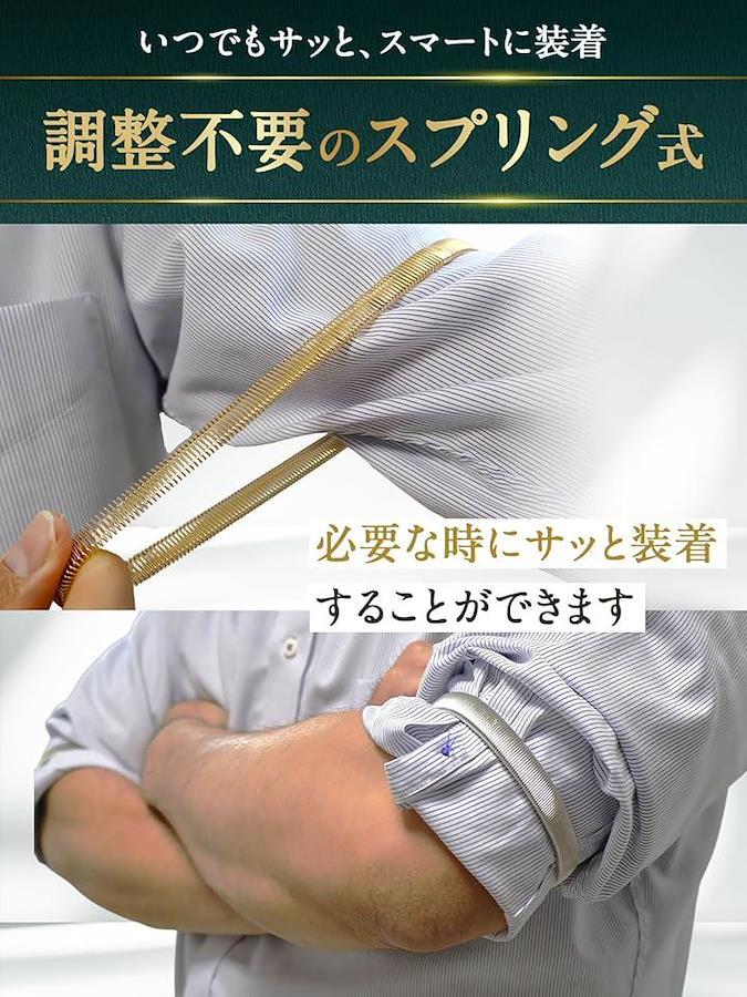 フリーサイズのスプリング式なので、サイズ調整することなくサッと手軽に装着することができます。
