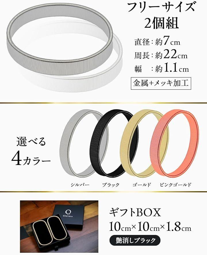 「商品詳細」2個入りフリーサイズ 直径約7cm、周長約22cm、幅1.1cm、1個25g ギフトボックス 約10x10x1.8cm