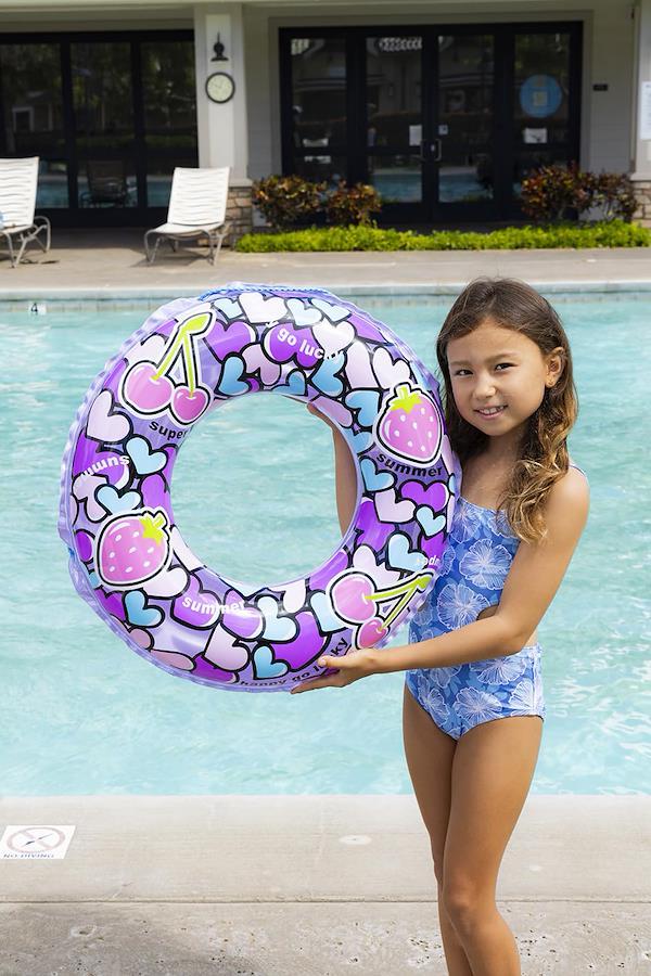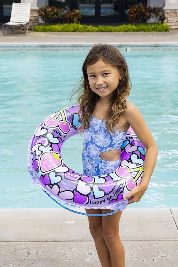 対象年齢4歳~8歳くらいのお子様に最適!。膨らんだ状態のウキワの内周は約85~90cmです。ロープ付き。