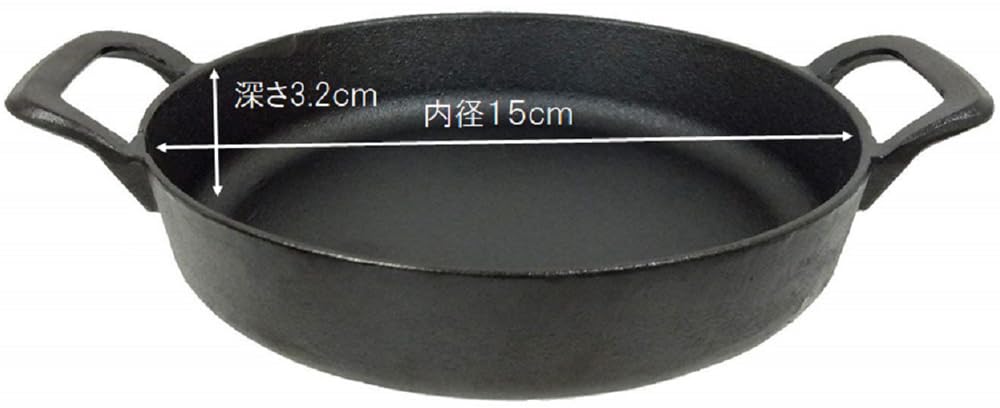 Ishigaki skillet frying pan, two-handed, cast iron, 15cm