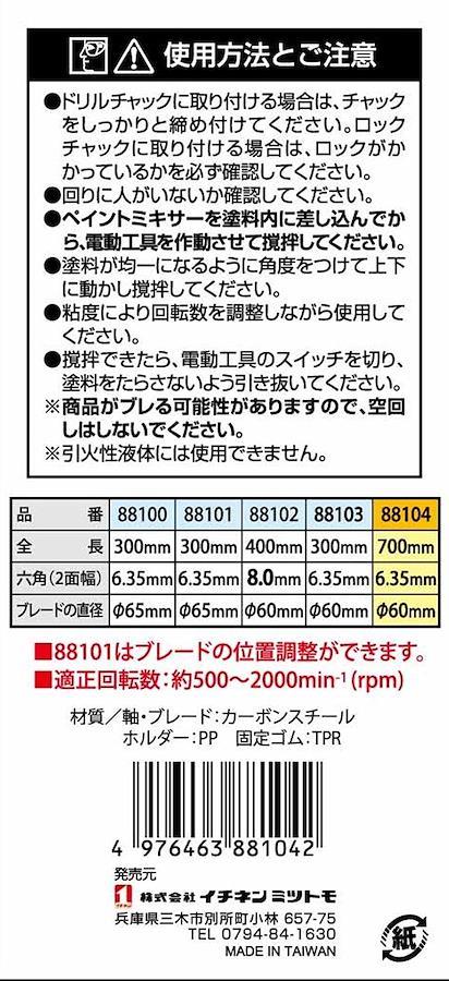 3営業日以内に発送≪新品未開封品≫:イチネンアクセス(旧イチネンミツトモ) RELIEF(リリーフ) 先端パーツその他 六角軸ロングペイントミキサー 700mm 88104 スパイラルタイプ