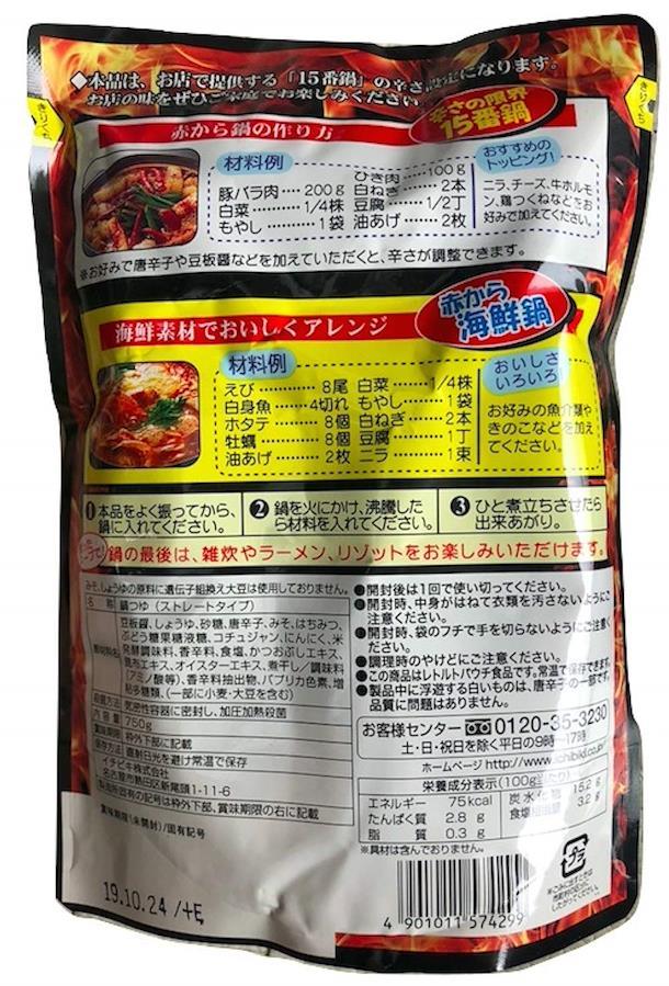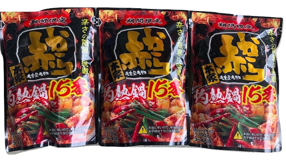 ●期間限定商品です(10月~2月予定)●辛さの限界に挑戦!激辛好きのための「赤から鍋15番」です。●複数の唐辛子、激辛唐辛子エキス、豆板醤とコチュジャンを秘伝のみそにブレンドしています。●ストレートタイプ、3~4人前です。