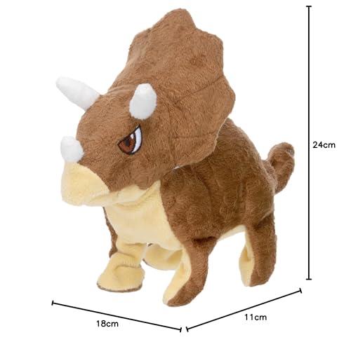 恐竜が口を開けながらほえて、シッポをふって歩きます。