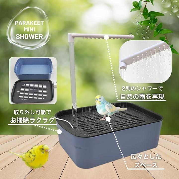 広々としたスペースにより、水の中を歩いたり、シャワーを浴びながら羽ばたいたりと、インコが自由に動き回る姿を見て癒されます。