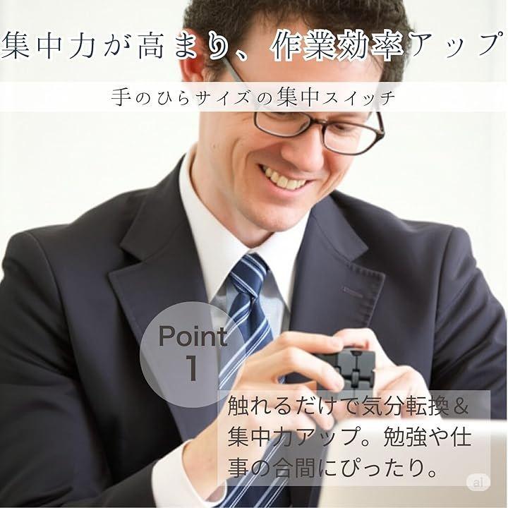 「集中力が高まり、作業効率アップ」指先で自然に動かせる設計により、無意識に抱えるストレスや落ち着かなさを軽減。