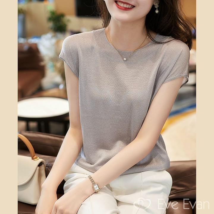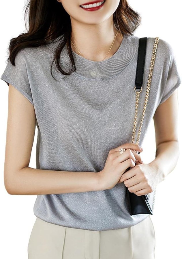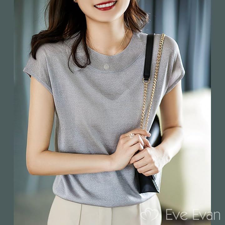 「取り入れるだけで即。艶っぽ美人」 ラメを織り込んだ素材を使用しているので、動くたびに艶のある光沢感を手に入れられる女っぽサマーニット。 透け感を楽しめる薄手の素材なので、インナーを合わせて着こなす。