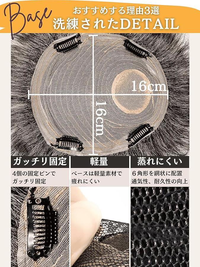 「通気性がよく長時間の使用も快適」(8)ベース: 16cmx16cm 強力固定ピンは4つで、より自然なつけ心地を再現致しました。
