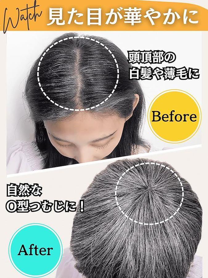 「極自然なO型つむじ」(2)特徴:「ビジネスショート+」はつつむじ周りの薄毛や生え際の白髪にお悩みの、ウィッグ、付け毛、カツラ初心者に最適の商品。