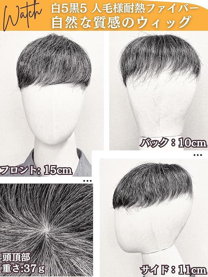 「商品詳細」(3)サイズ:ストレートショート フロント15cm トップ9cm バック10cm サイド11cm (4)重さ:約37g (5)カラー:白5黒5 (6)対象: メンズ 男性 医療用 プレゼント 中高年 ハゲ隠し (7)用途: うぃっぐ 部分ウィッグ かつら
