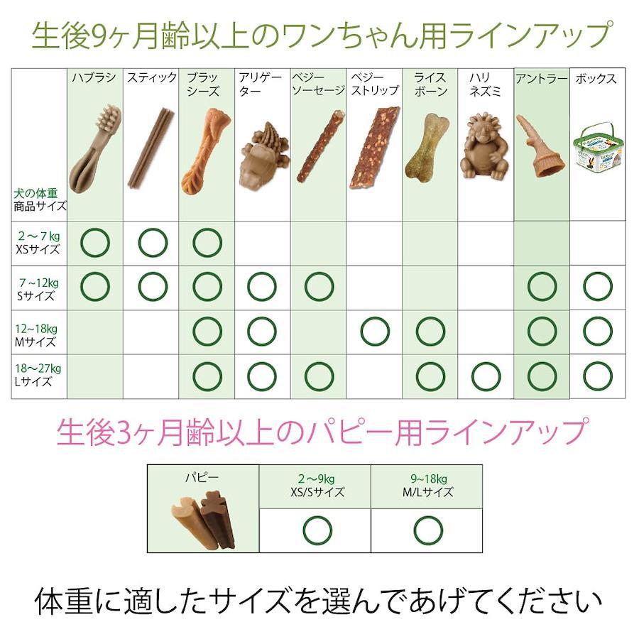 ●愛犬の体重に適したサイズを与えてください。●のどに詰まらせないよう必ず食べ終わるまで目の届くところで与えてください。●興奮時には与えないでください。●歯、歯ぐき、あごが健康な犬に与えてください。●飲み込んでしまう場合は手にもって最後までしっかり噛ませてあげてください。●製品の色、形状にばらつきがあることがございますが、品質には問題ありません。