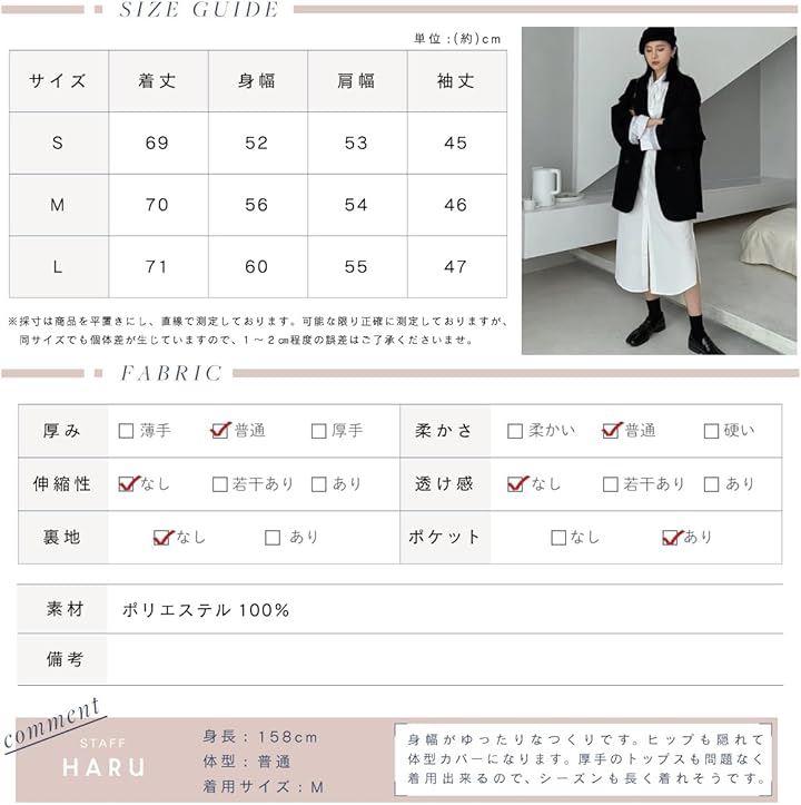 「Size」着丈/身幅/肩幅/袖丈 「S」 69/52/53/45「M」 70/56/54/46 「L」 71/60/55/47 *採寸は平置きにし、直線で測定しております。