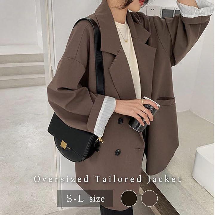 オーバーサイズなシルエットが魅力のダブルブレストテーラードジャケット。
