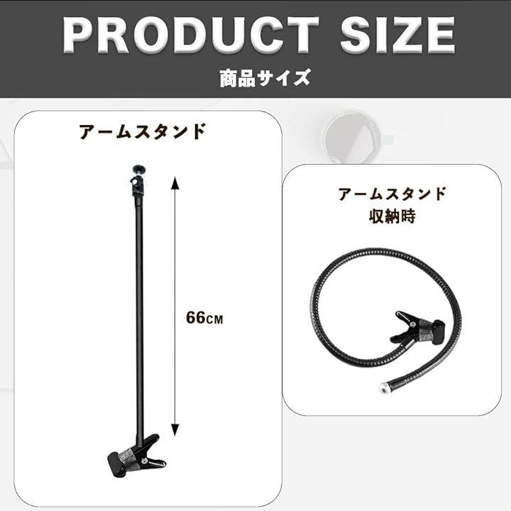長さ66cmのフレキシブルアームを採用しており機器をお好きな高さ、角度に自由にセッティングすることができます。