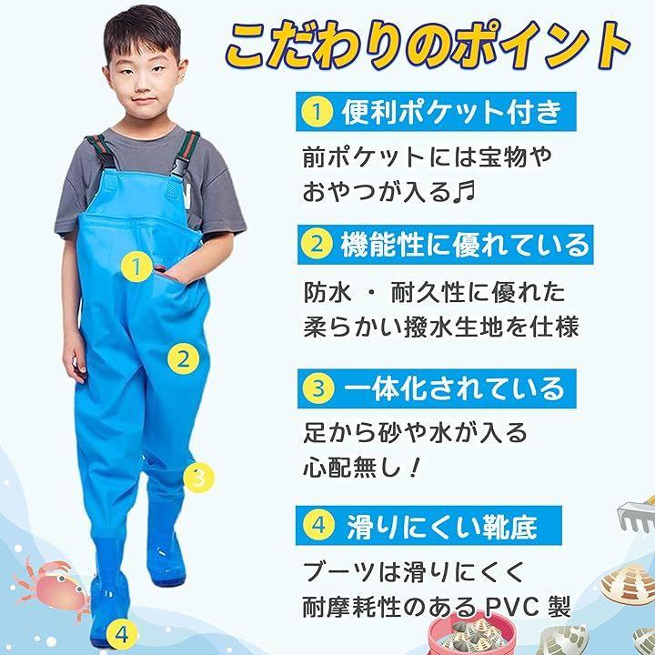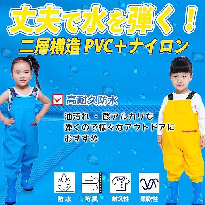 「素材」 PVC70%/ナイロン30%の素材で、胴長だから腰までしっかり防水柔らかく、丈夫で汚れはサッと水洗い