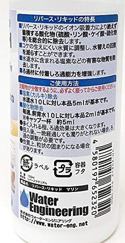 pH、KH、Caを高レベルに維持する水質調整剤です。リバース・リキッドのイオン吸着力により絶えず蓄積する酸化物(硫酸、リン酸、ケイ酸、硫化物等)を総合的に除去する水質調整剤です。カルキ抜き効果もあります。コケの生えにくい水質に調整し、水換えの回数を減らすことができます。生体が取込む事により餌食いや排泄をサポートします。水道水に含まれる塩素などの有害な物質を除去します。ろ過材に付着しろ過能力を増強します。
