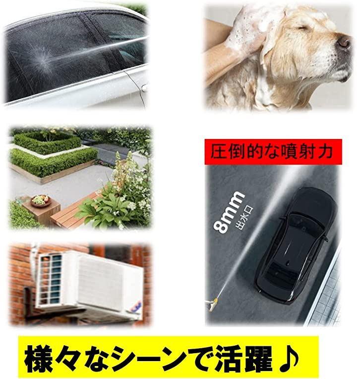 ・強力な水圧をいかし洗車・デッキの洗浄用としてはもちろんガーデニングの散水・ペットへのシャワーなど幅広い用途に合わせてお使いいただけます。