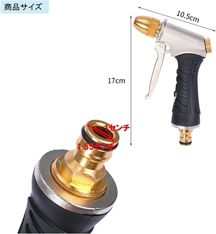 ・商品内容 「商品個数」散水ノズル1点 「サイズ(約)」 17x10.5cm 接続部分:1.5cm 「材質」ボディ:亜鉛合金 アタッチメントノズル部分:真鍮 「重量」 380g