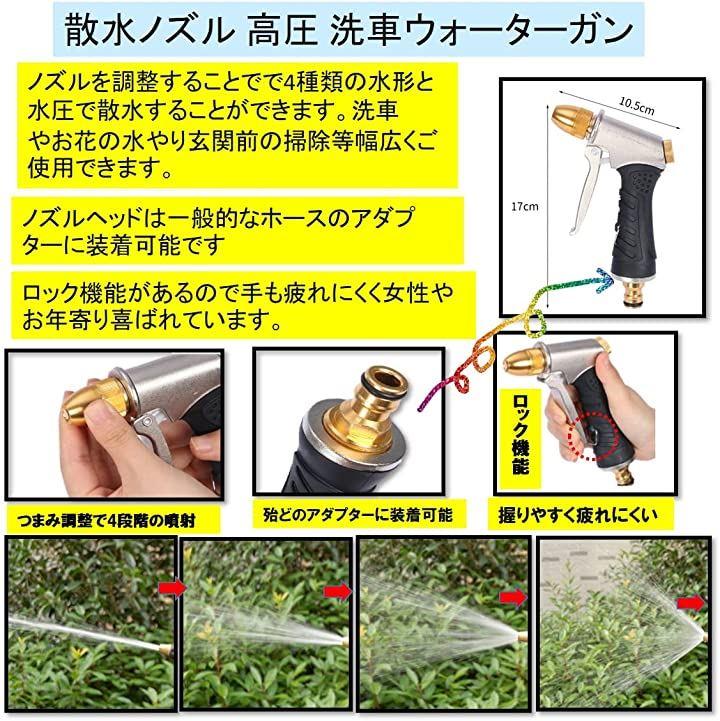・ウォーターガン 高圧 噴射 散水ノズル 洗浄ガン 4段階調節式 付け替え簡単 ・ 散水ノズル高圧 強力洗浄ガン 滑り止めグリップ ウォーターガン洗車 。 洗車 掃除 水やり 車 バイク 自転車 ボディー洗車 庭 ガーデン 花の水遣り 窓のガラスの洗い にご使用ください・
