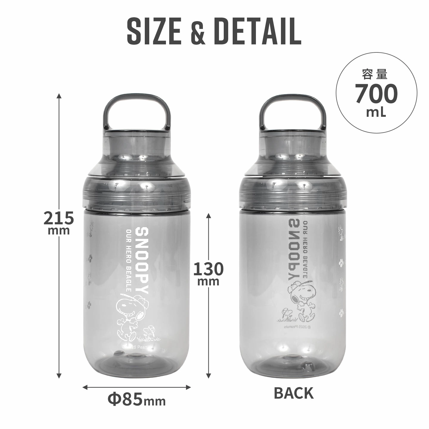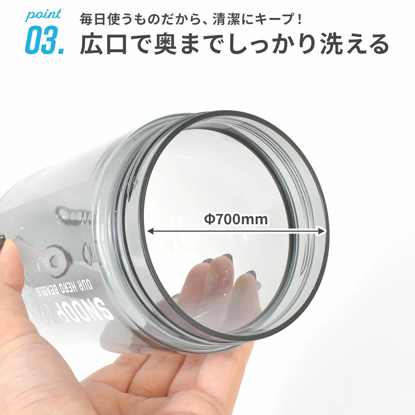 Snoopy Water Bottle, 700ml, Graduated, Easy to Clean, Wide Mouth, Lightweight, Made in Japan, Direct Drinking, Clear, Room Temperature/Heat Resistant, Clear Bottle with Handle, Portable, Cute, Stylish, Simple, Shatter-Resistant [mari-bottle02]