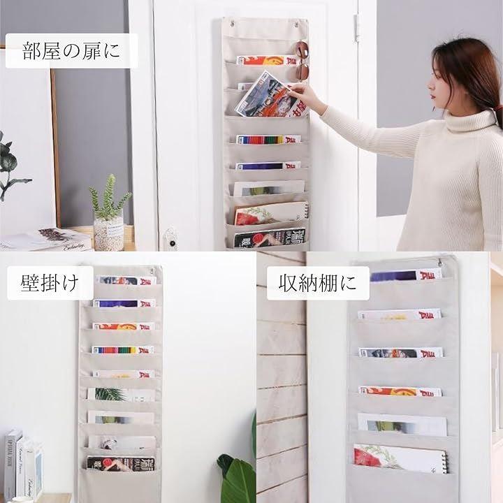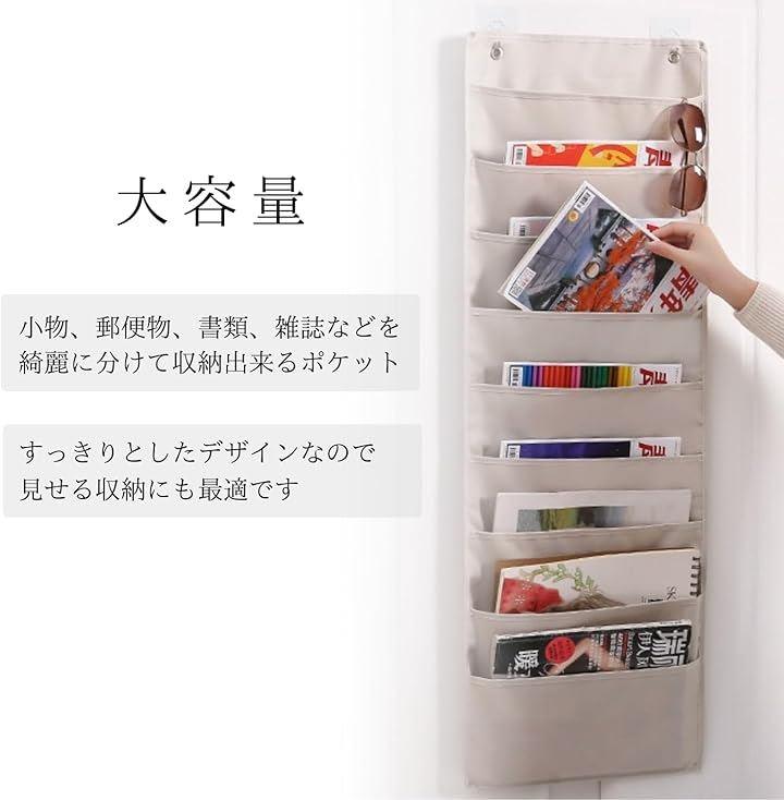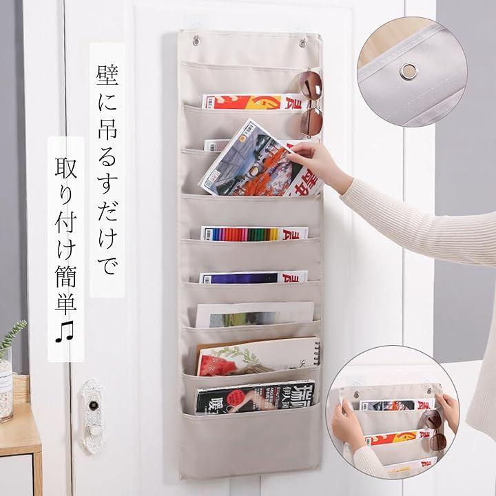 「多用途な収納ポケット」壁やドアに簡単に取り付けられ、郵便物や書類、小物、雑誌などの収納に最適です。