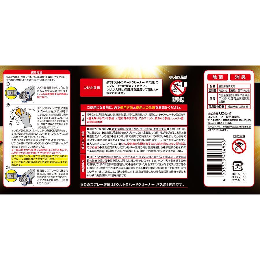 ウルトラハードクリーナーバス用の付け替えです。原材料: 界面活性剤(2.8%アルキルグルコシド)、溶剤、金属封鎖剤、除菌剤ブラント名: リンレイメーカー名: リンレイ商品の重量: 700 g