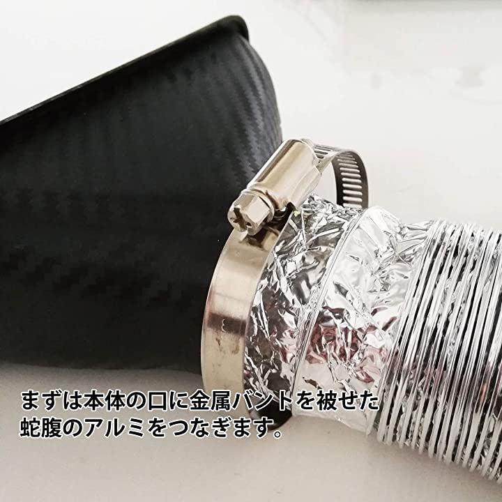 吸入口とアルミ蛇腹をバンドで固定するだけの簡単取付仕様。