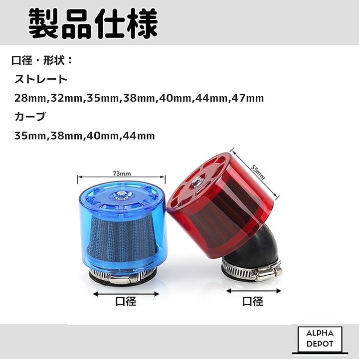 「商品詳細」カラー:レッド or ブルー / 口径・形状:ストレート φ28mm / ストレート φ32mm / ストレート φ35mm / ストレート φ38mm / ストレート φ40mm / ストレート φ44mm / ストレート φ47mm / カーブ φ35mm / カーブ φ38mm / カーブ φ40mm / カーブ φ44mm