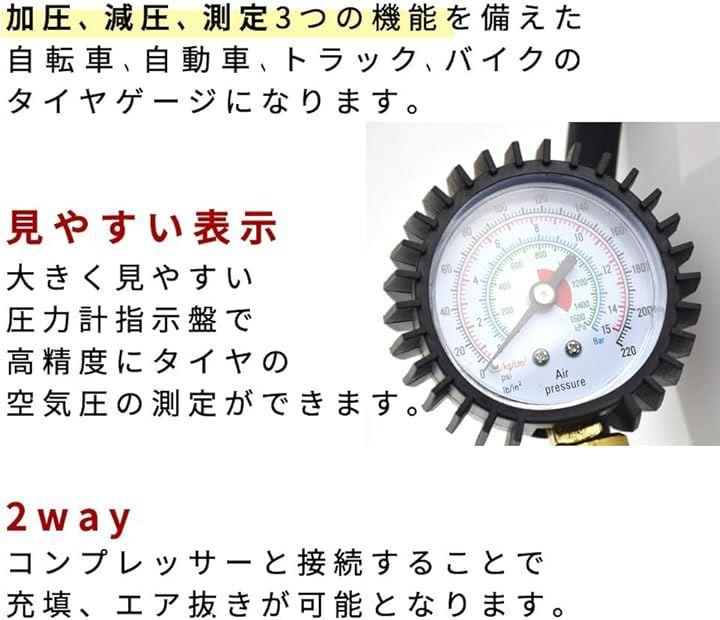 また、エアーコンプレッサー、エアアーポンプと接続することで空気入れを行うことができるエアチャックガンになります。