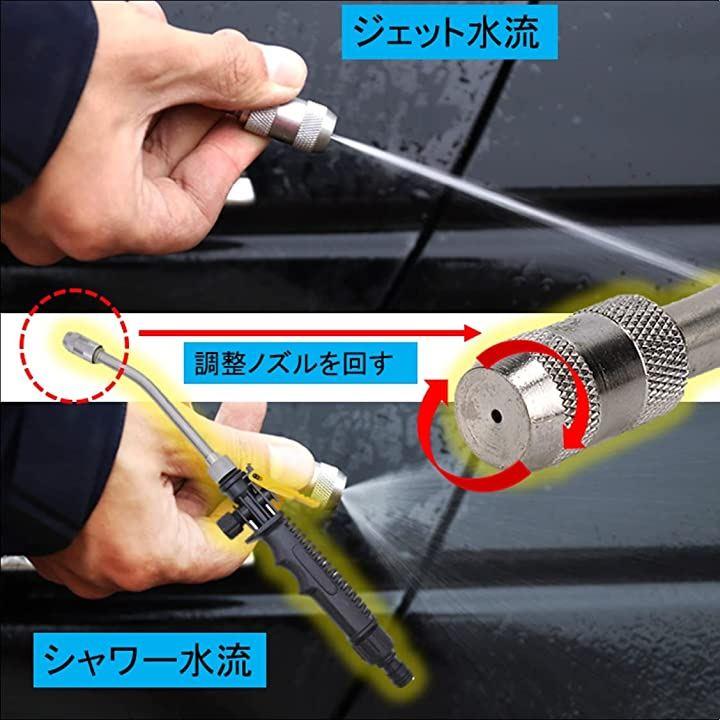 ・調整ノズルを回すことでお好みの水流に調節ができ、ジェット水流(高圧)からシャワー水流(低圧)までシーンや用途に応じて使い分け可能。長さの違ううれしい2本セットで高所から狭い場所まで対応*