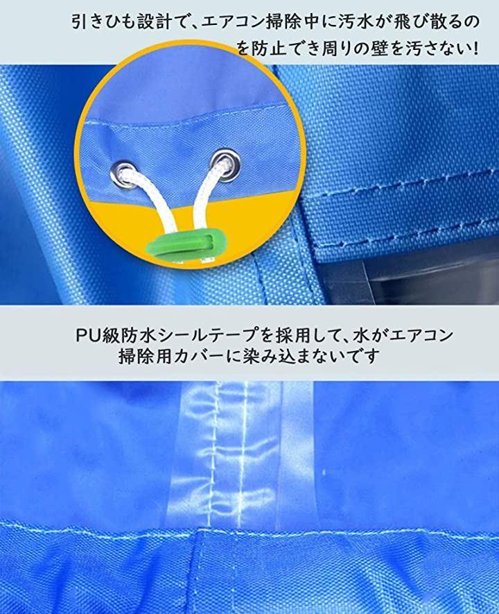 ・「防水構造」PU級防水シールテープを採用して、水がエアコン掃除用カバーに染み込まないです。