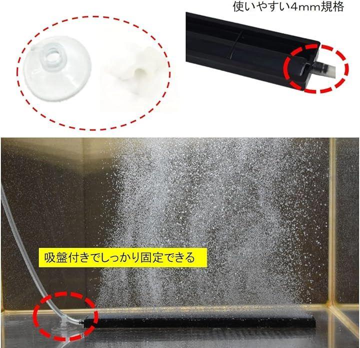 規格内径4mmのエアーチューブとエアポンプに接続して合わせることで、通常のエアストーンより繊細できめ細かな空気を送り込み、水中の溶存酸素量を上げることで魚へのエラへの負担を軽減して、安定して病気のかかりにくい水作りに役立ちます