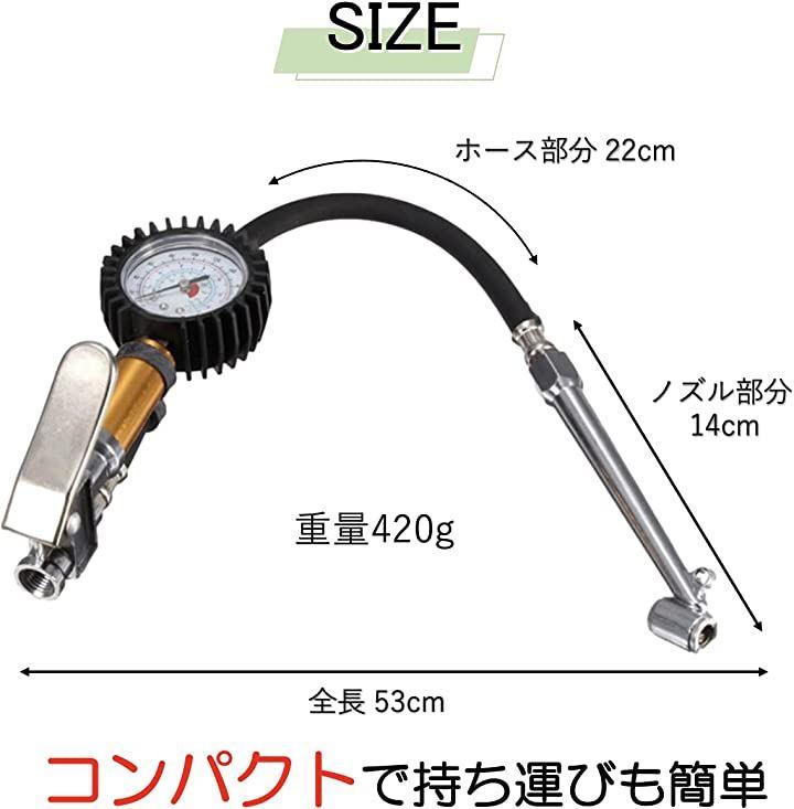 圧力計の測定範囲が広く、自転車から大型トラックまで、タイヤの空気圧を測定することが可能です。