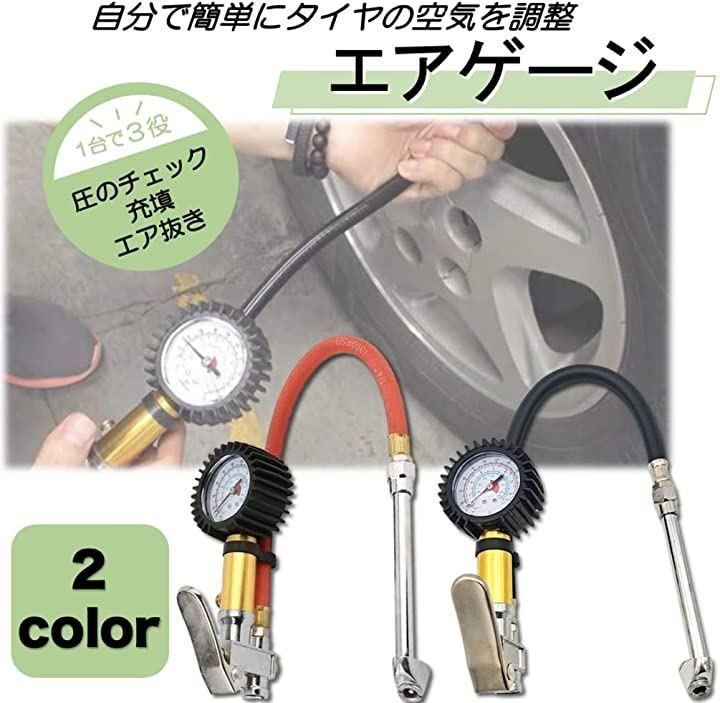 自動車・バイク等のタイヤの空気圧確認、また、エアコンプレッサーと接続することで、空気圧の補充ができるエアチャックガンです。