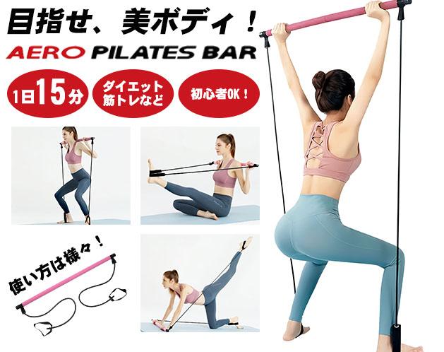 ★目指せ美ボディ!手軽に全身トレーニング!*ピラティスバーとはトレーニングバー・持ち運べるジムとも呼ばれ、バーベルやゴムハンドなど色々なトレーニングアイテムの機能を兼ね備えたもので、1つで様々なトレーニングができ、初心者の方でも簡単に使いこなせるおすすめアイテムです。*使い方次第で負荷もソフトからハードに自由に調節できるので、ダイエットからハードトレーニングまで年齢性別を問わず手軽に行えます。*腕、胸、背中、足などを鍛え、普段使わない筋肉を刺激することで脂肪燃焼をサポートしてくれます。*ヨガ・ストレッチ・筋トレ等、様々な使用目的に合わせてご利用頂けます。*一日10分程度、テレビを見ながら自宅でトレーニングできる優れもの!*コンパクトに収納できるので邪魔になりません。
