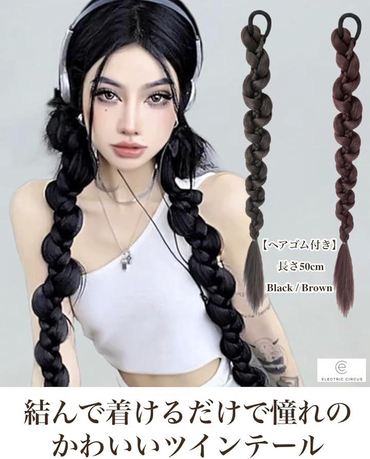 結んで着けるだけで、憧れの可愛いロングのツインテール(2本セット)